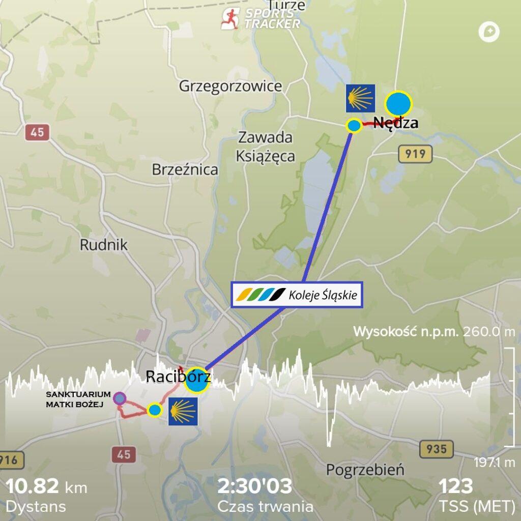 Plan naszego dzisiejszego wędrowania okrojony został do przejścia kilku kilometrów w samym Raciborzu (do Sanktuarium i droga powrotna na dworzec kolejowy) oraz do kilkunastominutowego przejścia i doglądnięcia odcinka znajdującego się w Nędzy a dokładniej Drogi jakubowej mieszczącej się między dwiema stacjami kolejowymi, znajdującymi się w tej miejscowości.