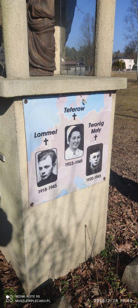 Spotkanie rozpoczęliśmy przy interesującej nas kaplicy ze zdjęciami trojga osób, które zginęły w 1945 roku i miały jakiś związek z Tworogiem. Niestety, nie otrzymaliśmy zbyt dużo informacji, ale tymi które posiadamy, już możemy się z Wami podzielić :